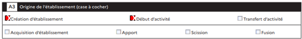 - Cadre A3 : Cocher uniquement Création d’établissement