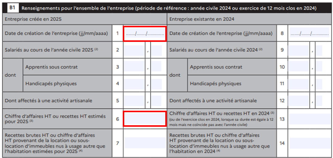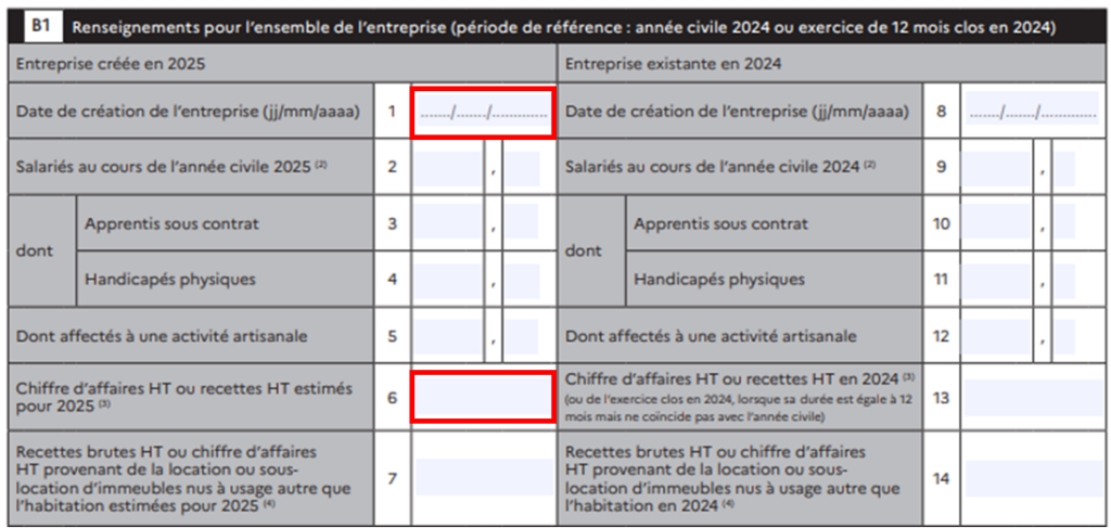 Cadre B1 – Renseignements entreprise (partie gauche uniquement)