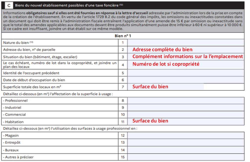 Astuce : Pour plusieurs biens, déclarez chaque établissement séparément (un par SIRET).