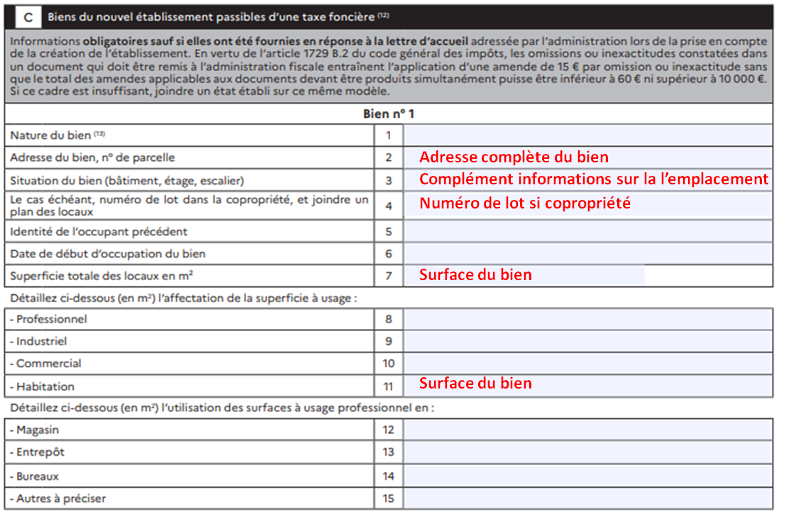 Cadre C – Biens passibles de taxe foncière