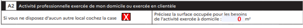 → Cocher la case “Si vous ne disposez d’aucun autre local cochez la case” et indiquer une surface de 0 m²